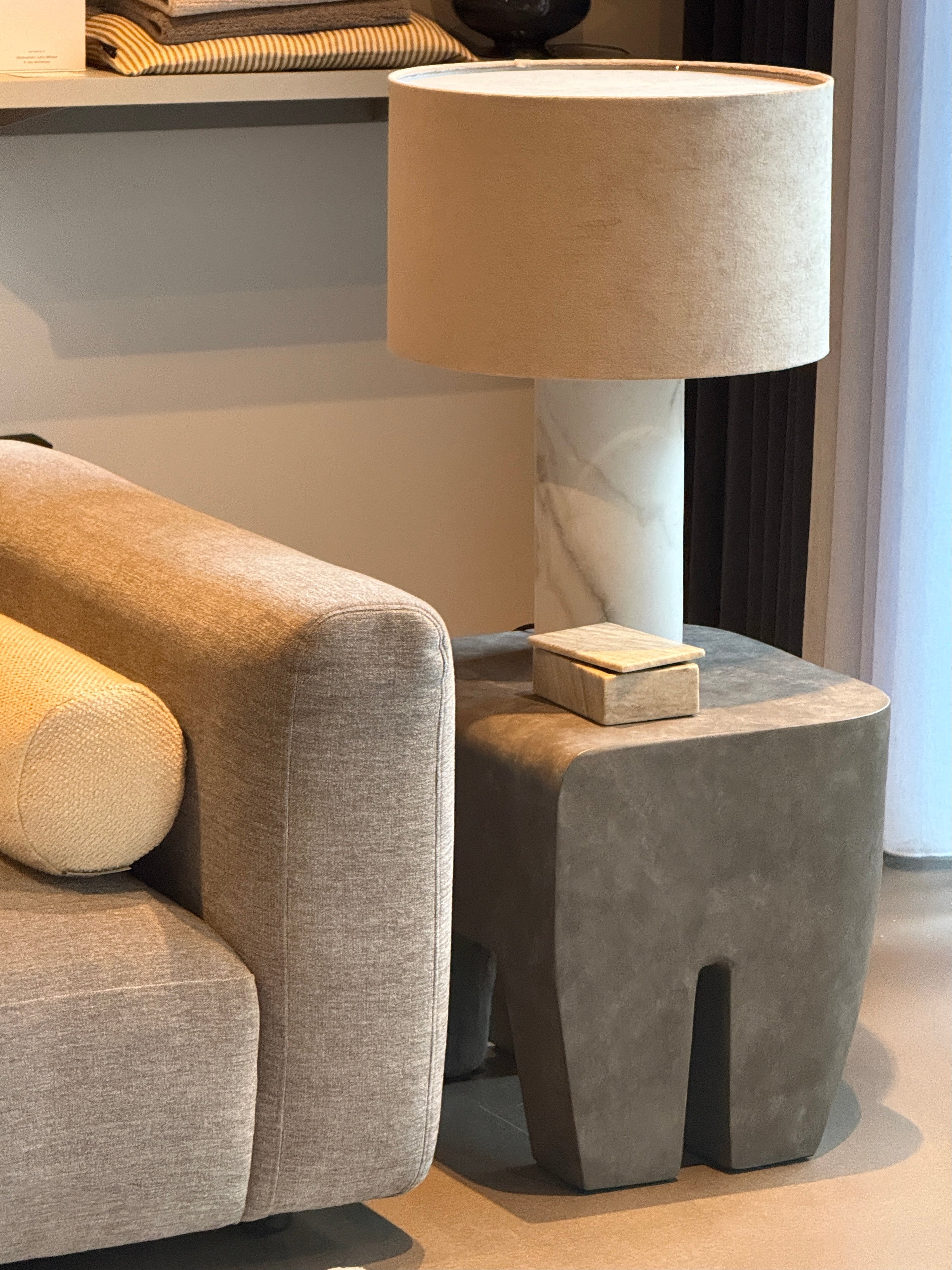 Velkommen til vores kreative showroom og butik på Aarhus Ø, hvor vi byder dig indenfor i en verden af design, æstetik og funktionalitet til dit hjem. Her kan du opleve, hvordan vores passion for interiør og boligindretning kommer til live gennem en unik kombination af stoflighed, hygge og farveskalaer.