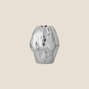 Bobby er en dekorativ stentøjsvase med en skinnende sølvfinish, der reflekterer lyset og skaber liv i overfladen. Den organiske form giver vasen karakter, samtidig med at den falder roligt ind i indretningen. Perfekt som en form for skulpturel detalje – med eller uden indhold. En vase, der fanger blikket uden at larme.