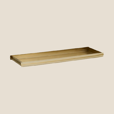 Kodiak long golden er en aflang bakke i stål med børstet messing finish – enkel i sit udtryk og nem at bruge i hele hjemmet.
