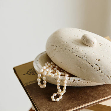 Den ovale form og det tilhørende låg gør den ideel til opbevaring af smykker, nøgler eller andre små ting, der fortjener en smuk ramme. Sitra tilfører rummet en rolig elegance og en følelse af orden – uanset om den står i entreen, soveværelset eller på badeværelset.
