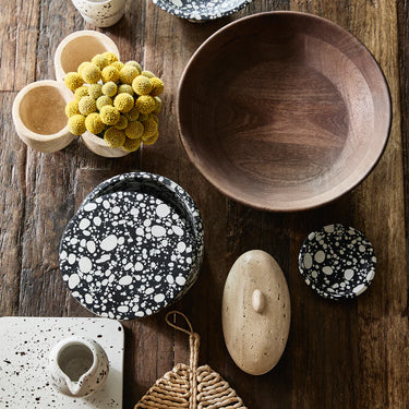 Sitra opbevaringskrukke forener funktionalitet og æstetik i én tidløs form. Udført i travertin – en natursten med sit karakteristiske spil af små huller – får hver krukke sit helt eget udtryk.