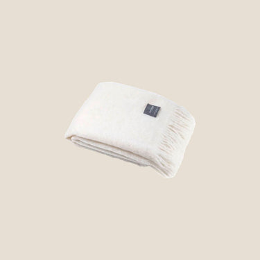 Mohair Blanket i Bright White er et klassisk, lyst plaid, der tilfører renhed og lethed til indretningen. Mohairfibrene giver en fluffy, luftig struktur, som både føles luksuriøs og varm.