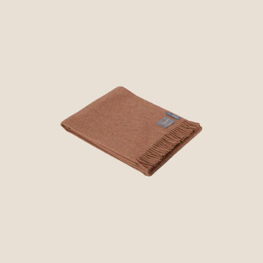 En plaid i genanvendt alpakauld i en rolig camel-farve. Den glatte struktur og det afdæmpede udtryk gør den til et naturligt valg i indretningen. Et blødt lag til kølige dage.