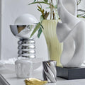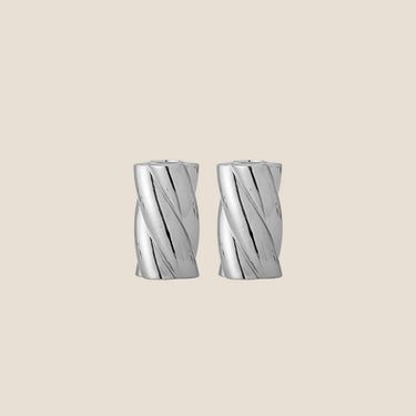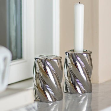 Silvia lysestagerne kombinerer enkelhed med elegance. De blanke sølvglaserede overflader i stentøj spejler lyset og tilfører bordet eller hylden et roligt skær. Sættet på to matcher smukt – og fungerer både som en nedtonet detalje i hverdagen og et festligt løft, når det skal føles lidt mere særligt.