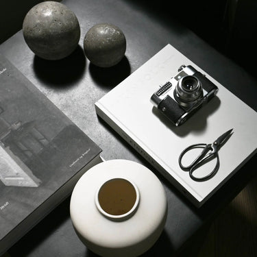 Enkei Jar i lille har samme skulpturelle formsprog som den større variant – men i et format, der gør den alsidig og let at integrere i flere rum. Den er skabt i Silver Travertine, hvor de naturlige mønstre og farvespil gør hver krukke unik.