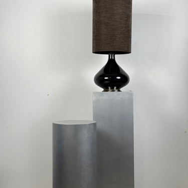 Chokoladebrun og sort er en klassisk kombination med kant og varme. Flavia-lampen her tilfører rummet en naturlig tyngde og et varmt skær, der bringer nærvær og karakter – særligt smuk i dæmpede omgivelser eller på mørke flader.