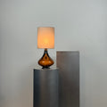 Denne version af Mini Flavia er både varm og moderne. Den sortlakerede fod møder en skærm i en lun, tostado-tone, der giver lyset en gylden karakter. En lampe, der smelter ind i rummet – og samtidig skaber karakterfulde kontraster.
