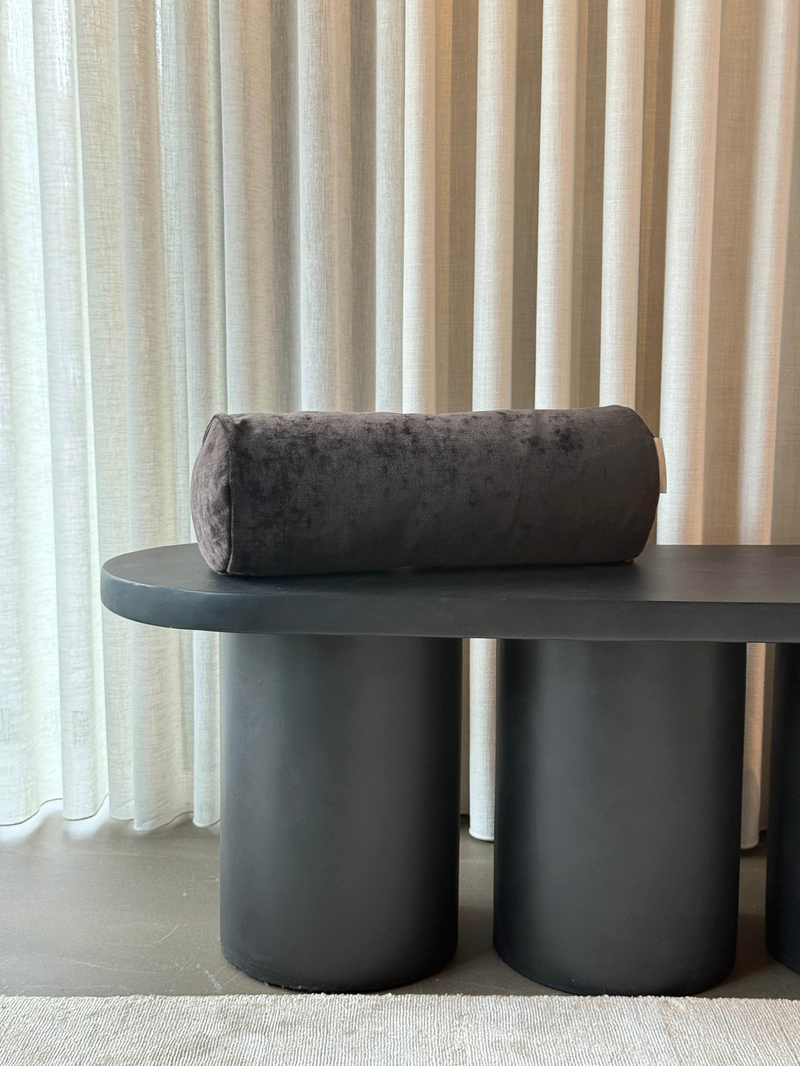 Eros i Mokka er en dyb, jordnær pude designet til at skabe ro og struktur. Den varme, mørkebrune velour changerer diskret i lyset og tilfører rummet en sofistikeret dybde.