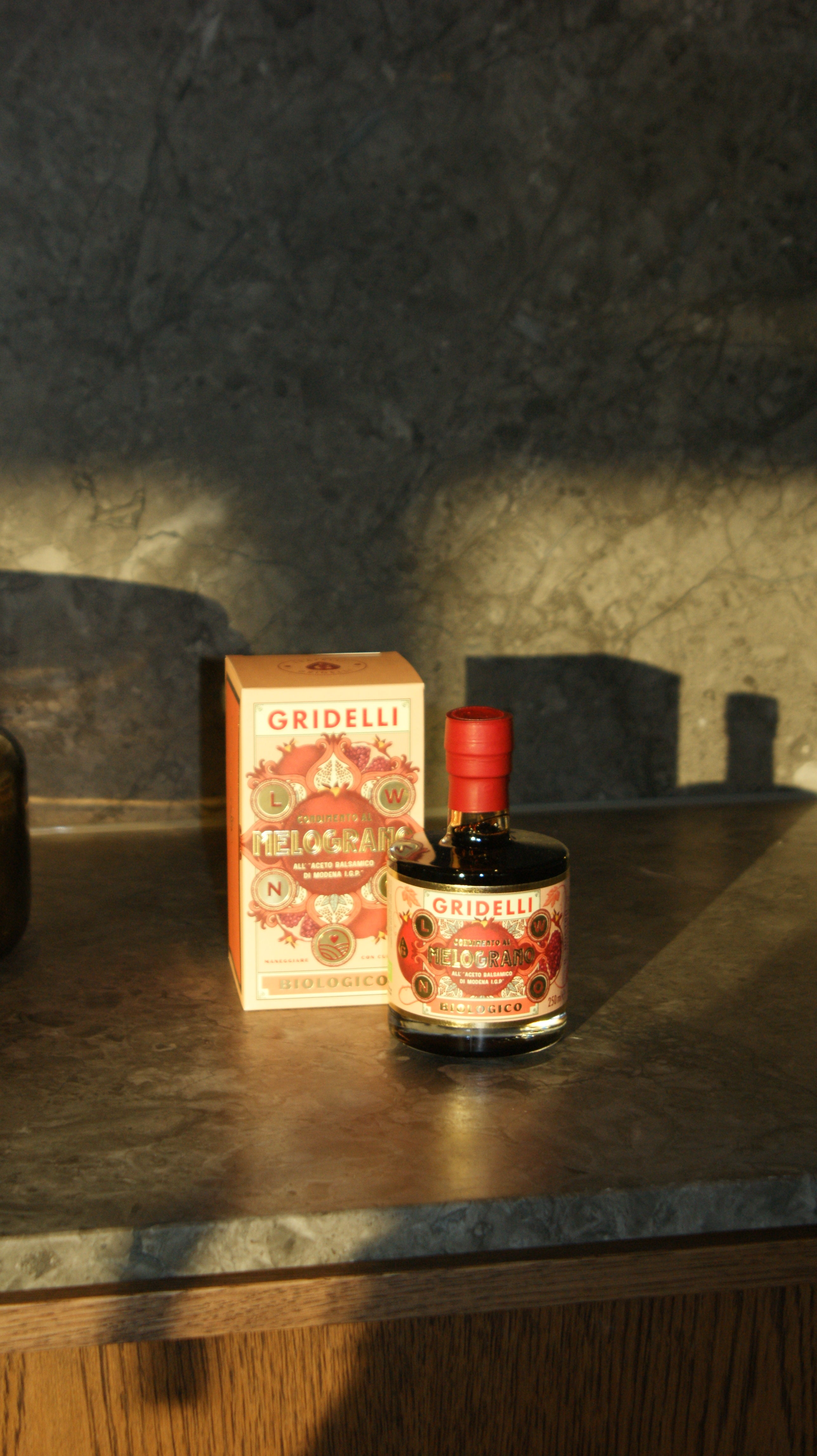 En frugtig balsamico med granatæble, der tilfører både sødme og syrlighed. Ideel til salater, ost, grillede grøntsager eller som smagsgiver i en marinade. En levende og nuanceret balsamico, der giver dine retter et smukt løft.