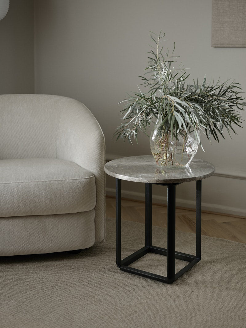 Florance Side Table er et sidebord med en stærk, men rolig tilstedeværelse. Det sorte stål giver bordet et rent og tidløst udtryk, mens den blanke overflade tilfører en subtil elegance, der fanger lyset. Et sidebord, der både kan stå alene som et markant statement – eller indgå som en del af en større komposition i hjemmet.