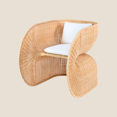 Fole Chair er en loungestol i rattan med et skulpturelt formsprog, der leger med organiske kurver og luftige linjer. Den naturlige flet giver stolen et let og indbydende udtryk, mens hynden tilfører blød komfort.