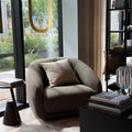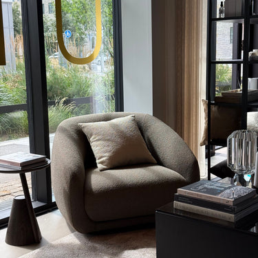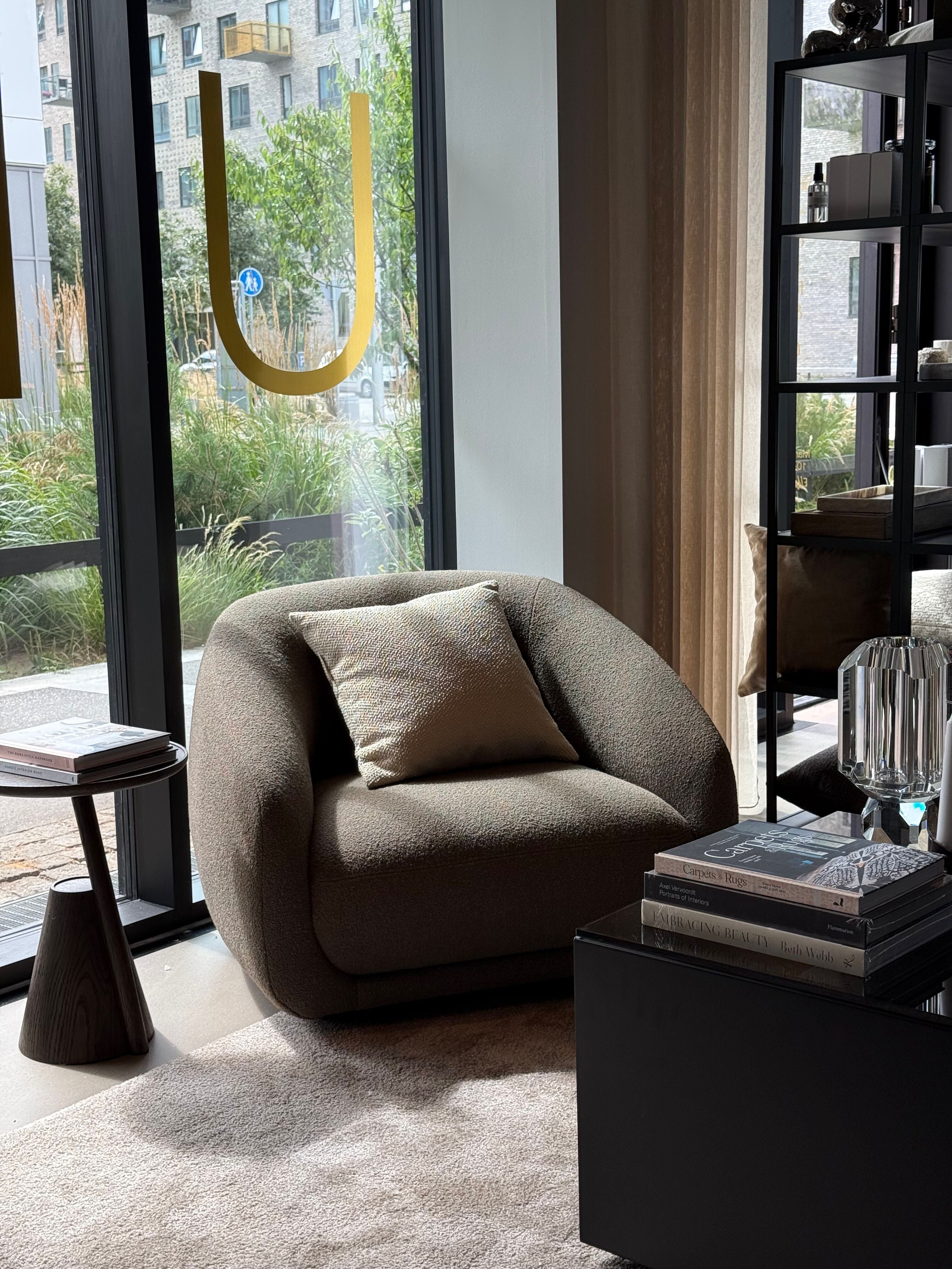 Montholon Lounge Chair er kurateret fra Wendelbo og er en markant og blød loungestol, der balancerer mellem skulpturel tilstedeværelse og lethed. Den står på en diskret, drejelig base, der næsten forsvinder under stolen og får den til at svæve over gulvet – hvilket giver det voluminøse sæde en elegant lethed.