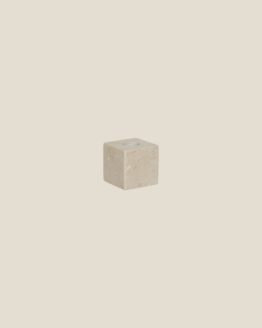 Marmorets naturlige åretegninger gør hver lysestage unik, og vægten sikrer stabilitet. Brug dem alene som stilrene objekter – eller i par. Perfekt på spisebordet, i vindueskarmen eller som en del af et stilleben.