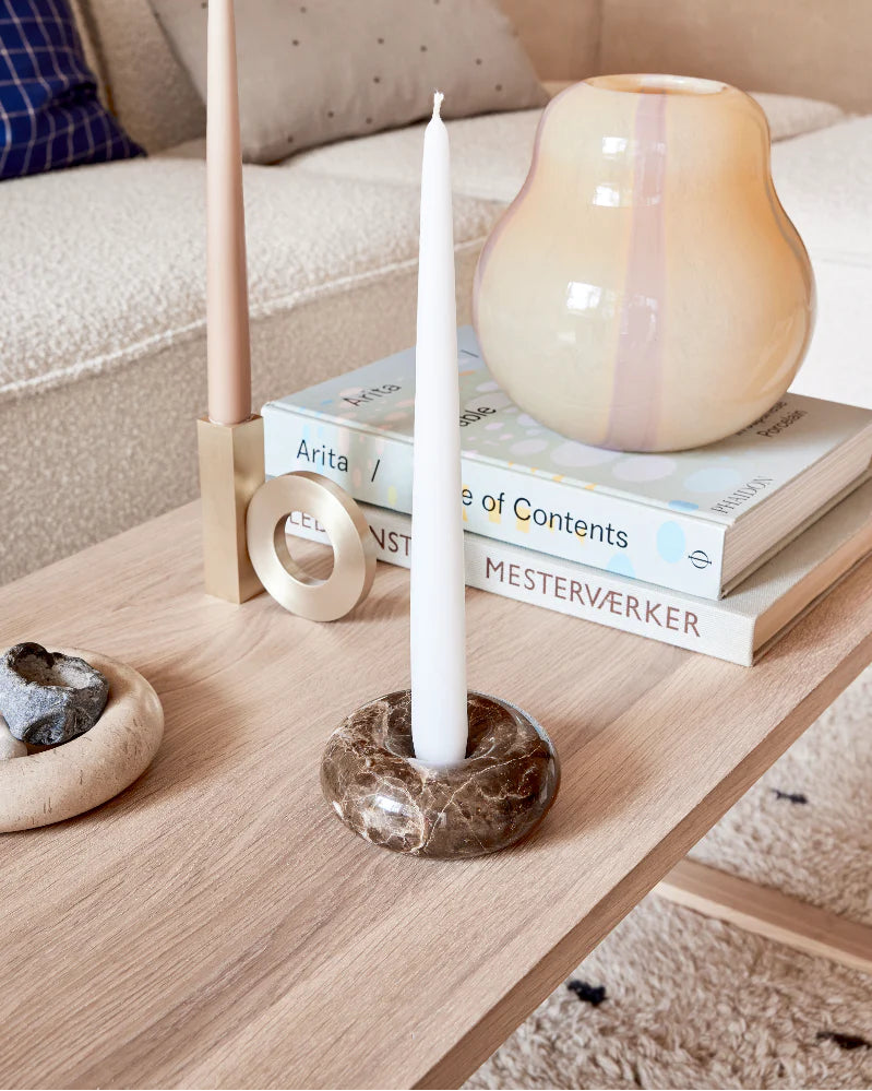 Designet til almindelige stagelys og perfekt som en del af et roligt, kurateret stilleben – alene eller i kombination med andre marmordetaljer. Et lille, men markant objekt, der tilføjer tyngde og elegance.